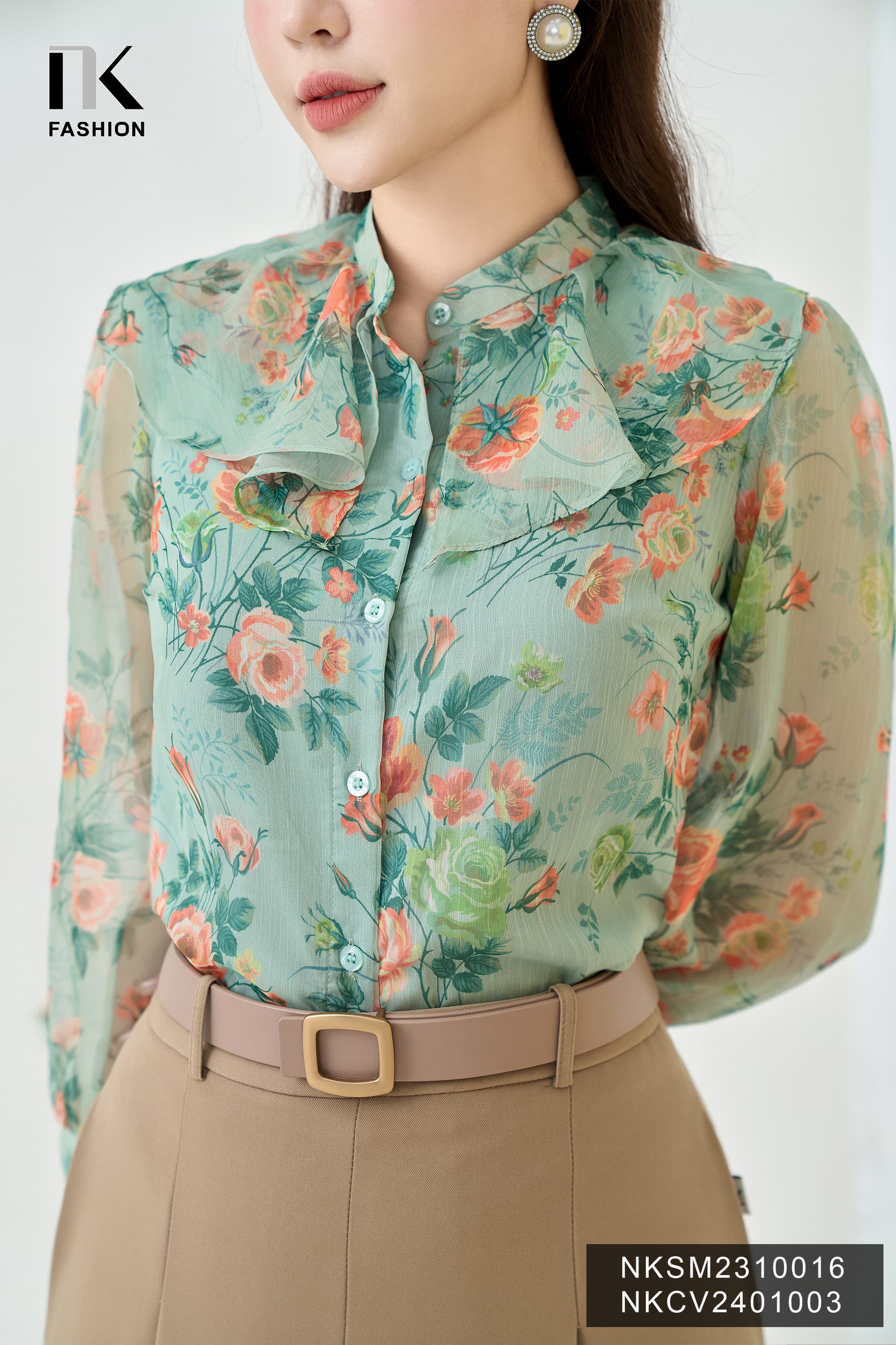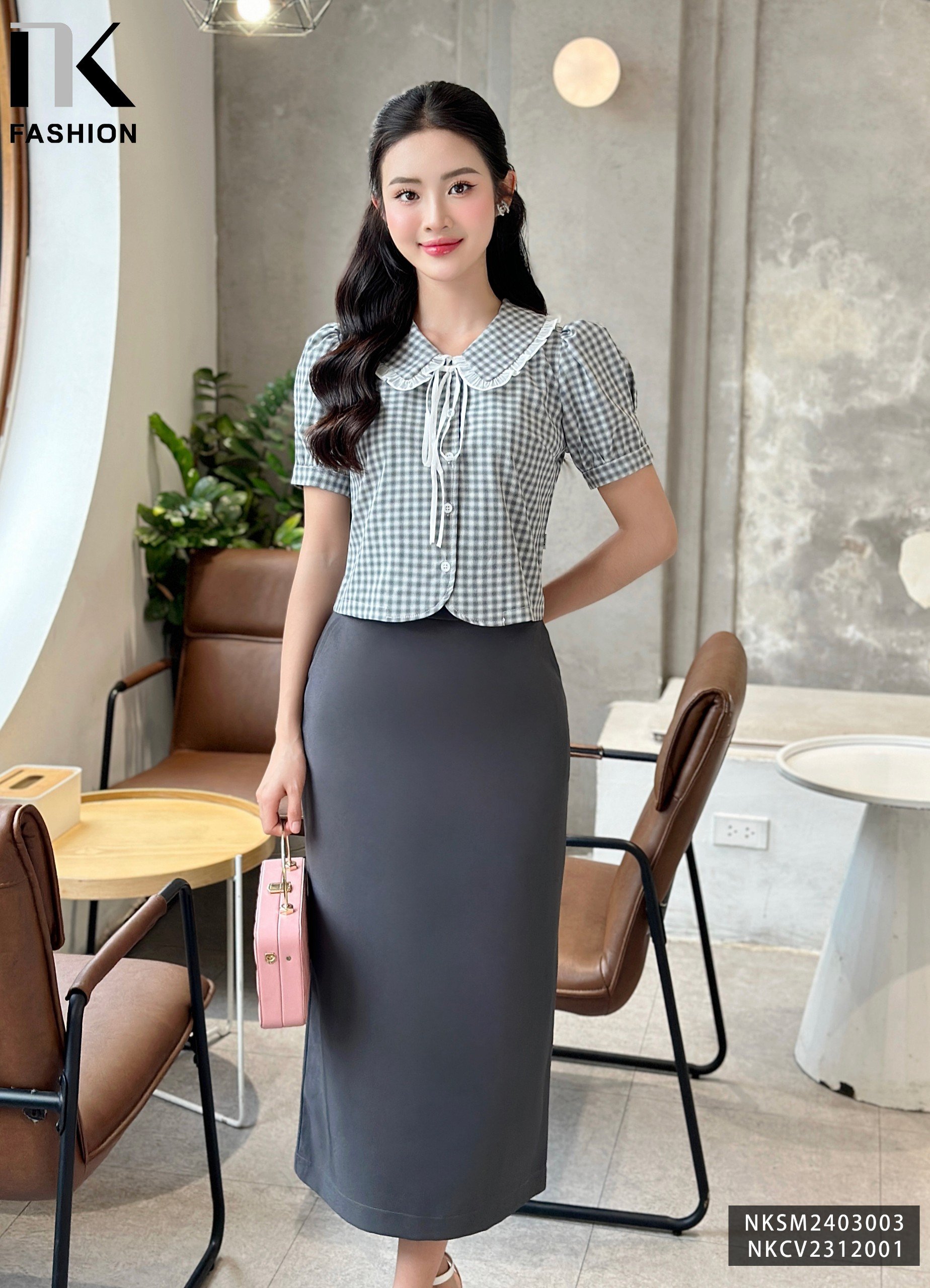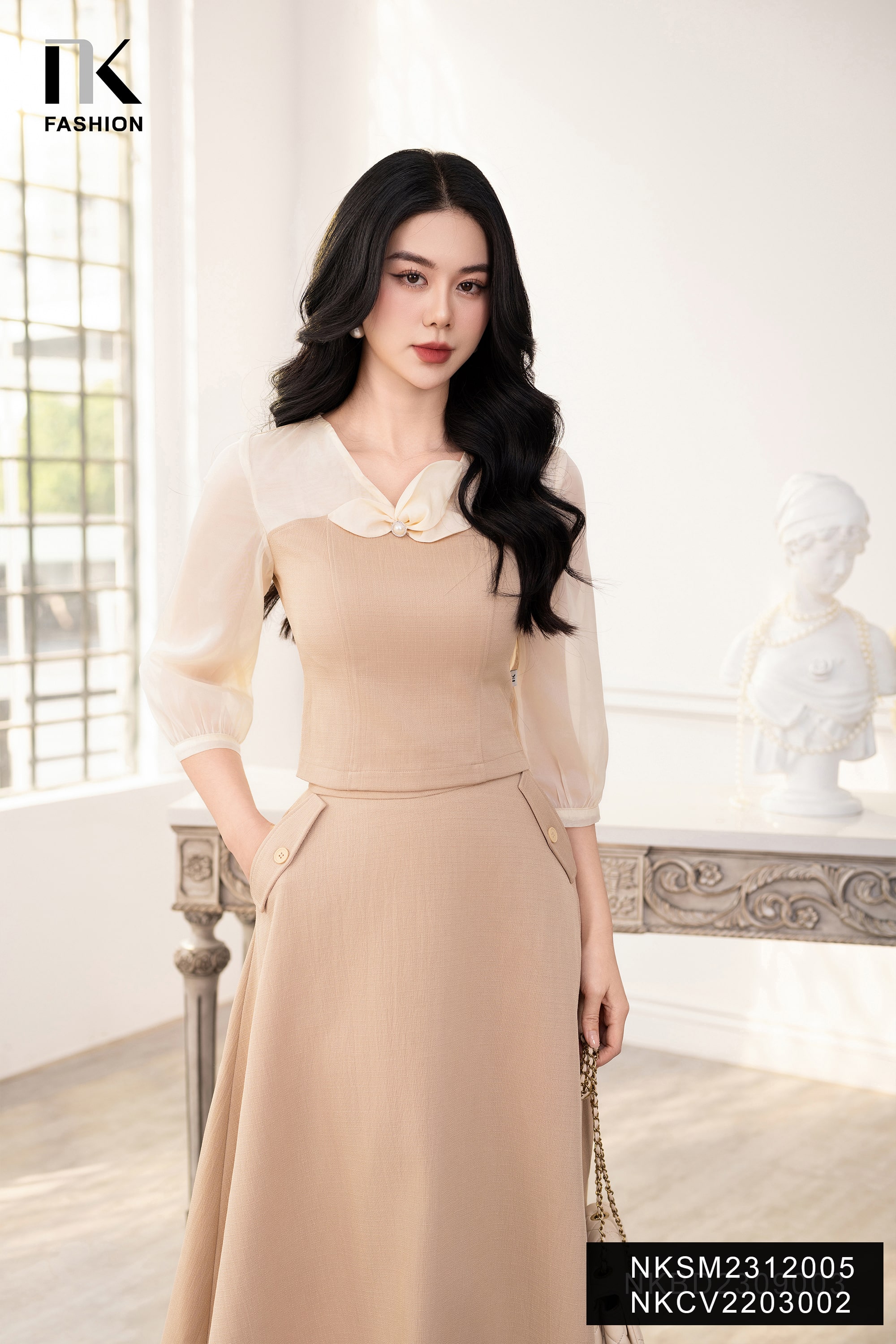 Trẻ trung, hiện đại nhưng vẫn thời thượng với thiết kế áo kiểu kết hợp chân váy. Sơ mi cổ vest kết hợp cùng chân váy chữ A trên gam màu trắng thanh nhã khéo léo hack tuổi để các nàng công sở xinh tươi như luôn ở tuổi đôi mươi; một chút cổ điển làm tăng thêm sức hấp dẫn cho tín đồ đam mê vẻ đẹp thanh lịch được thể hiện qua set áo vest kết hợp cùng chân váy xòe nhẹ nhàng