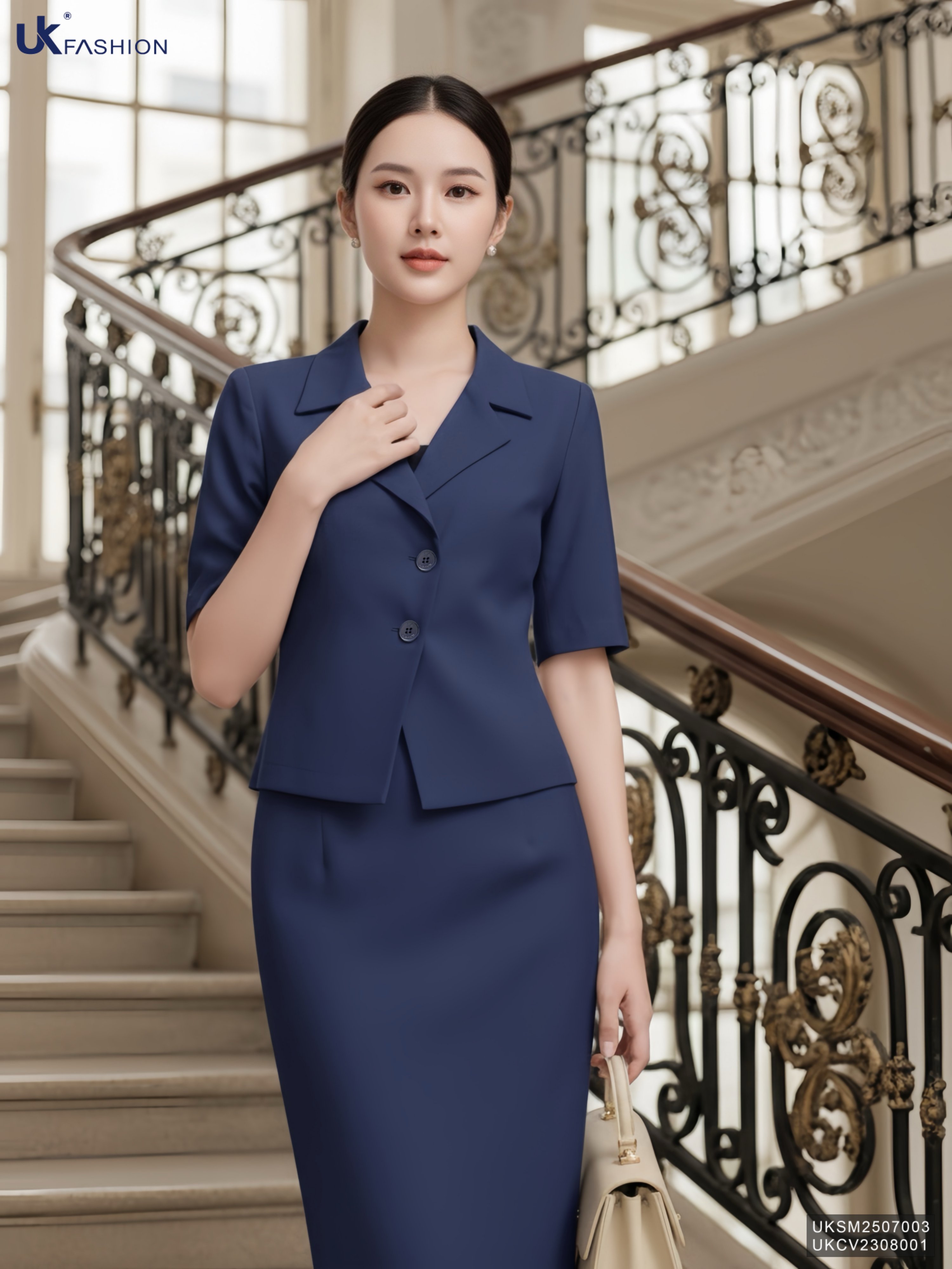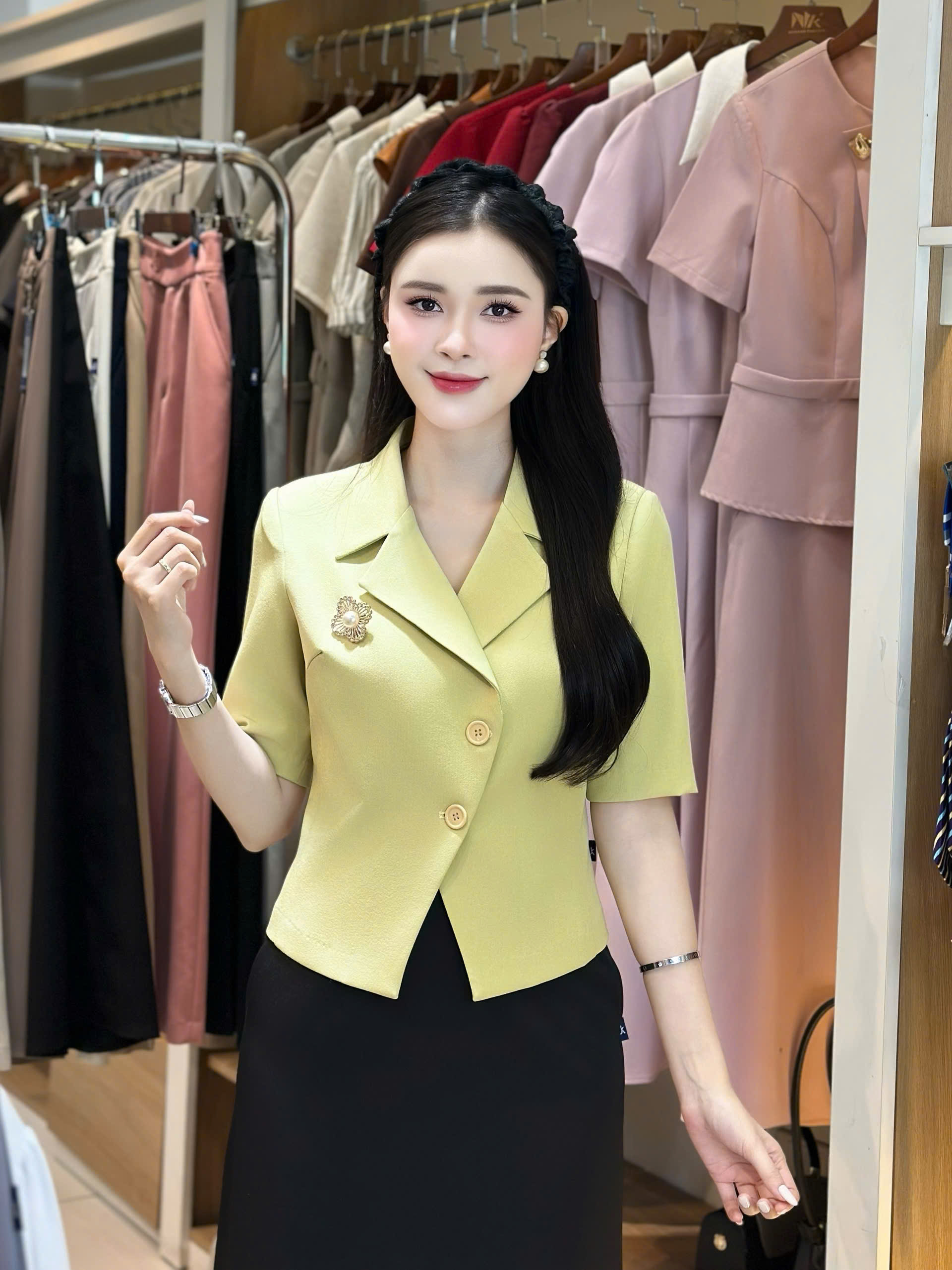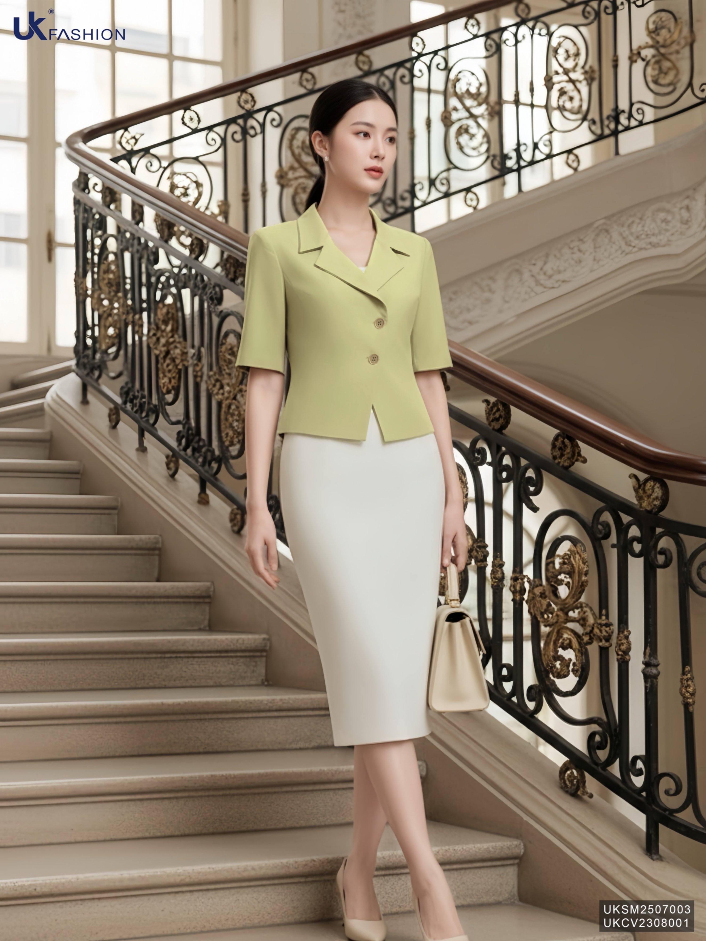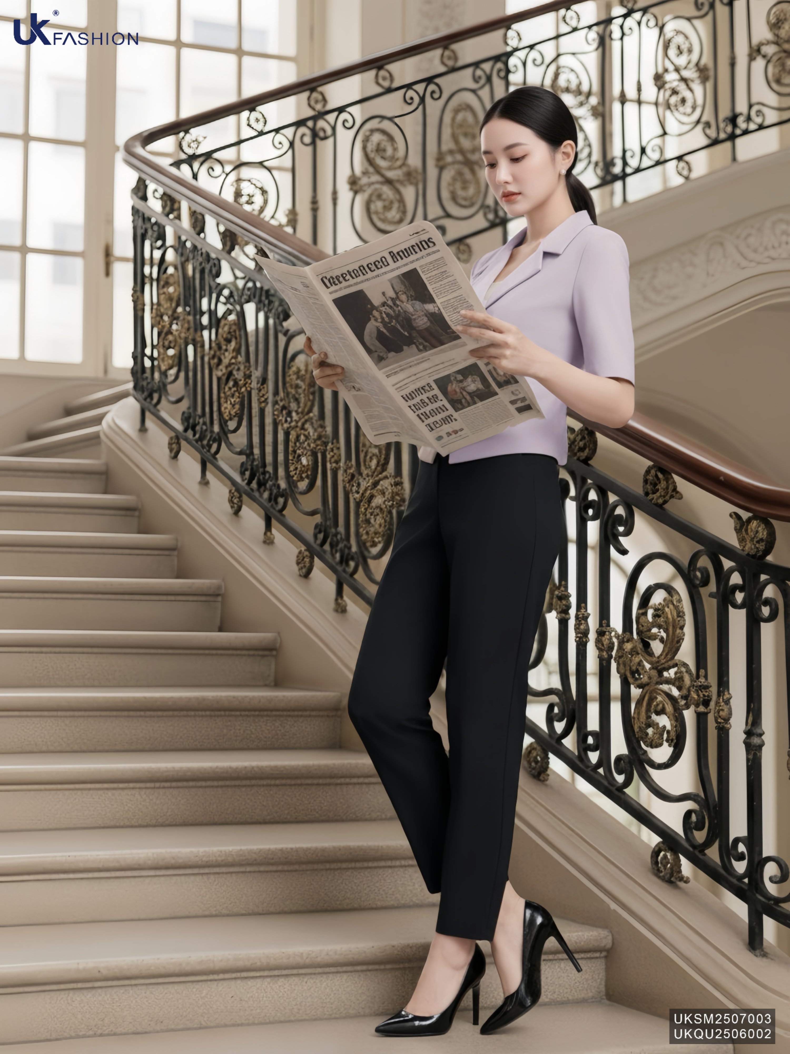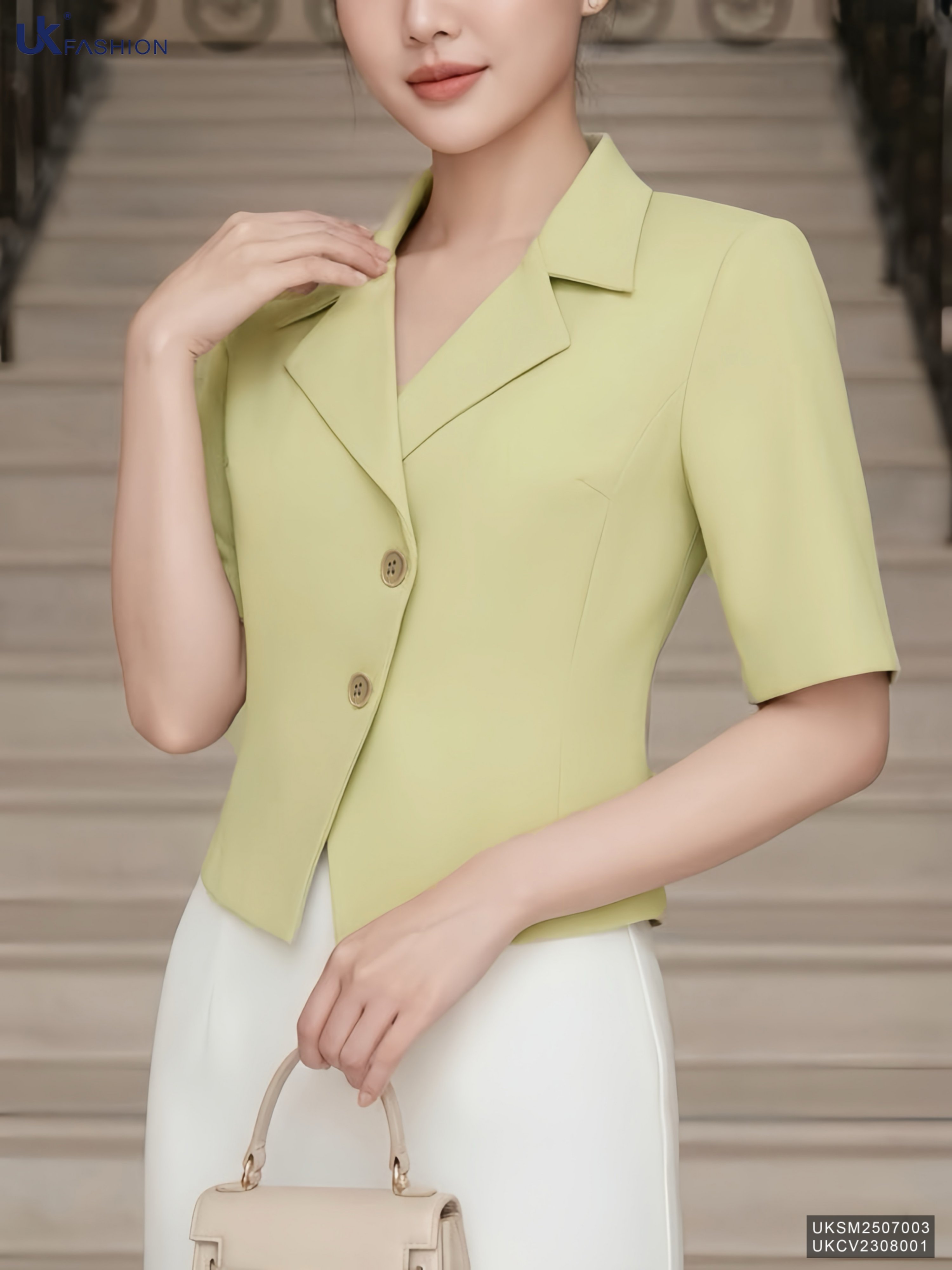 Áo giao 2 cúc vạt chéo cổ ve công sở dễ mặc, mềm mịn UKSM2507003