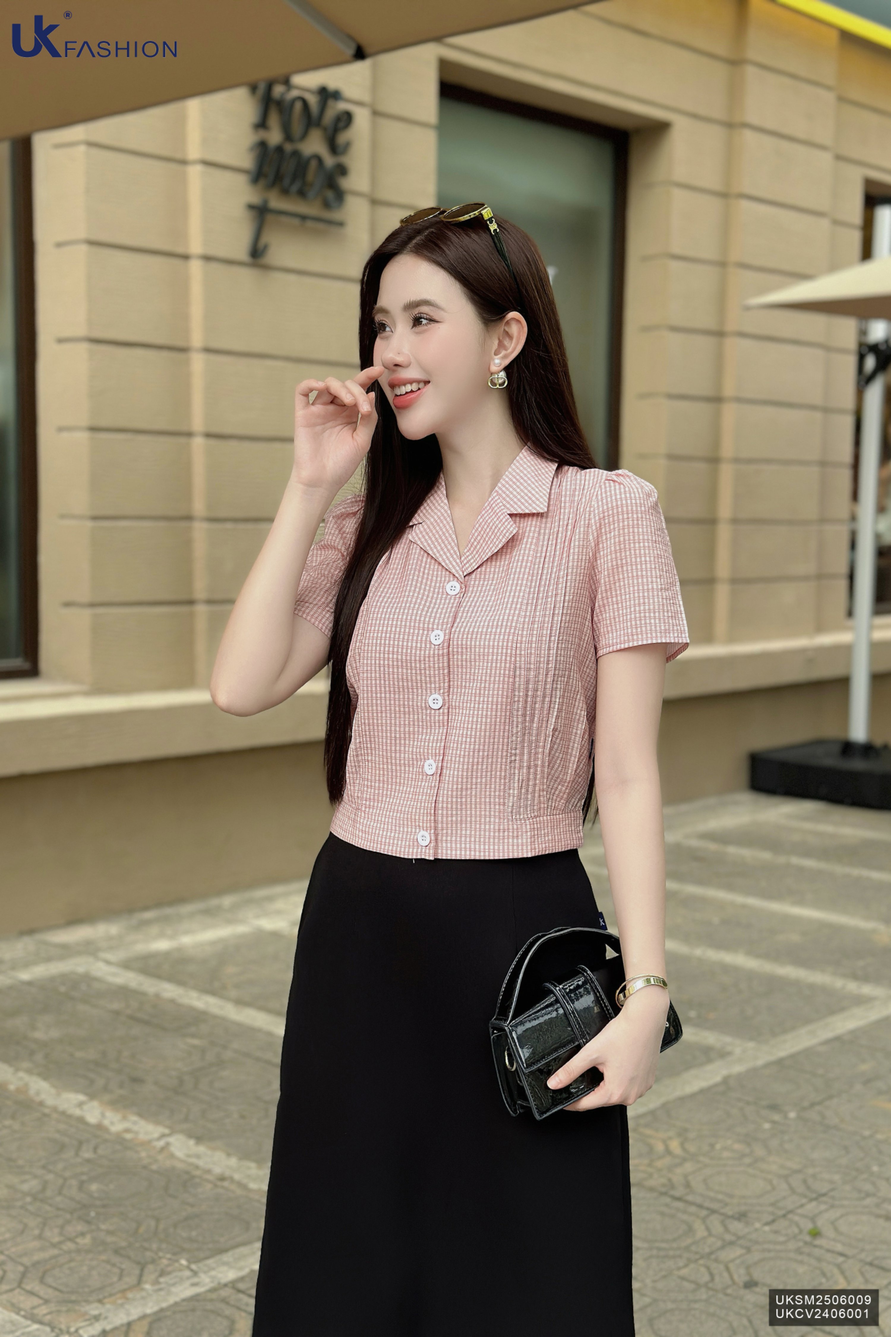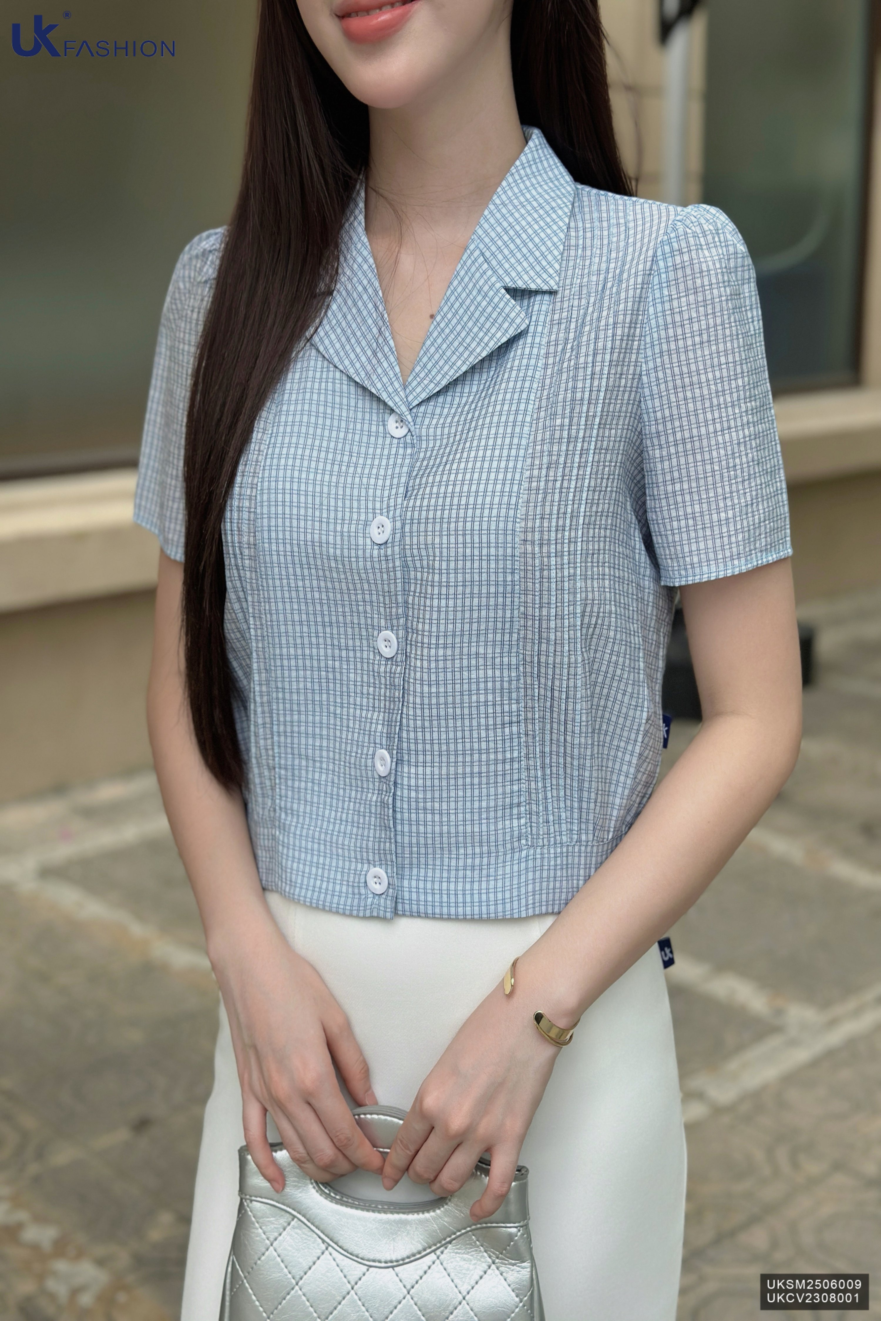 Sơ mi mí kẻ cổ ve mới lạ UKSM2506009