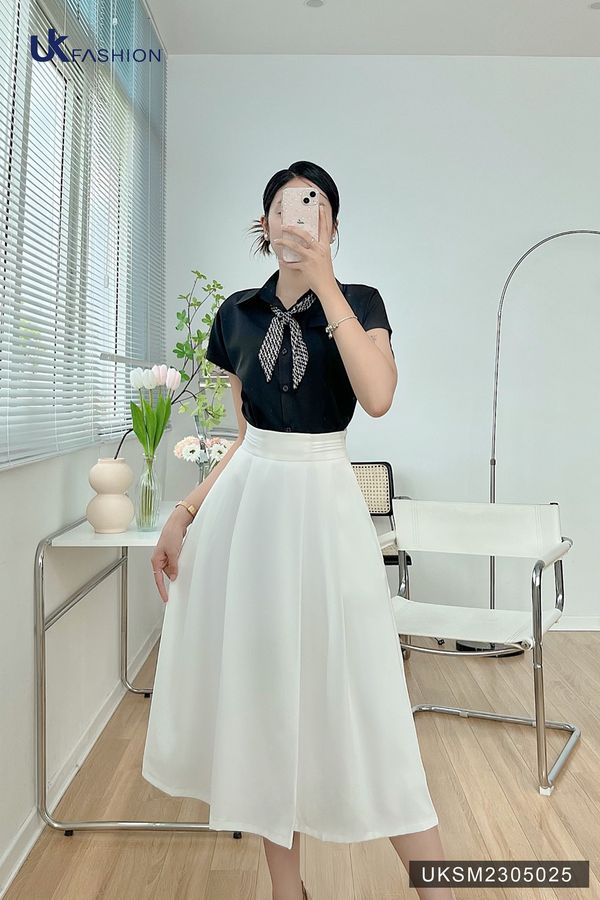 Hôm nay nàng diện gì đi làm? UK mang đến cho nàng một thiết kế áo sơ mi cổ đức UKSM2305025 nắp túi độc đáo cho mùa Hè này đây.