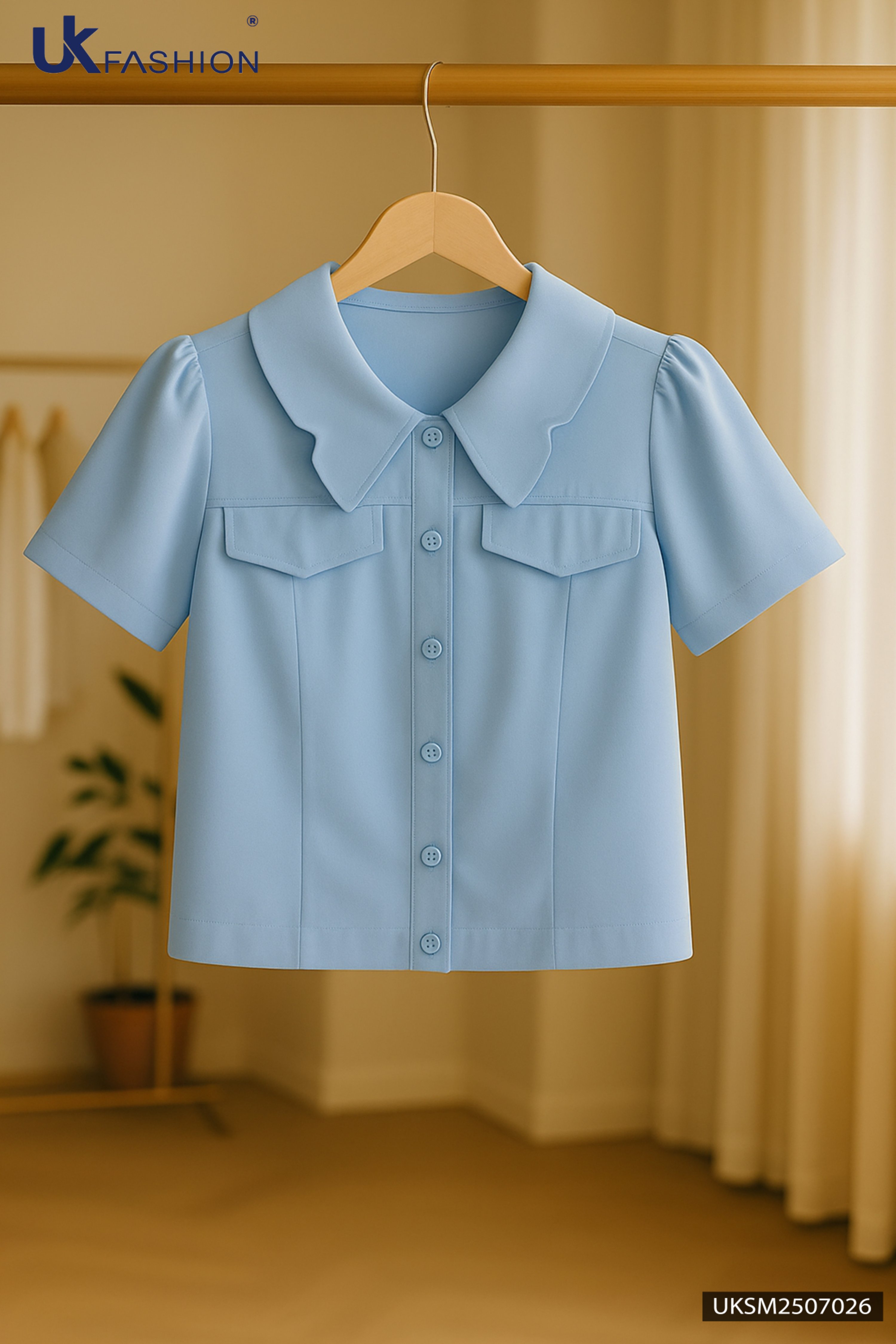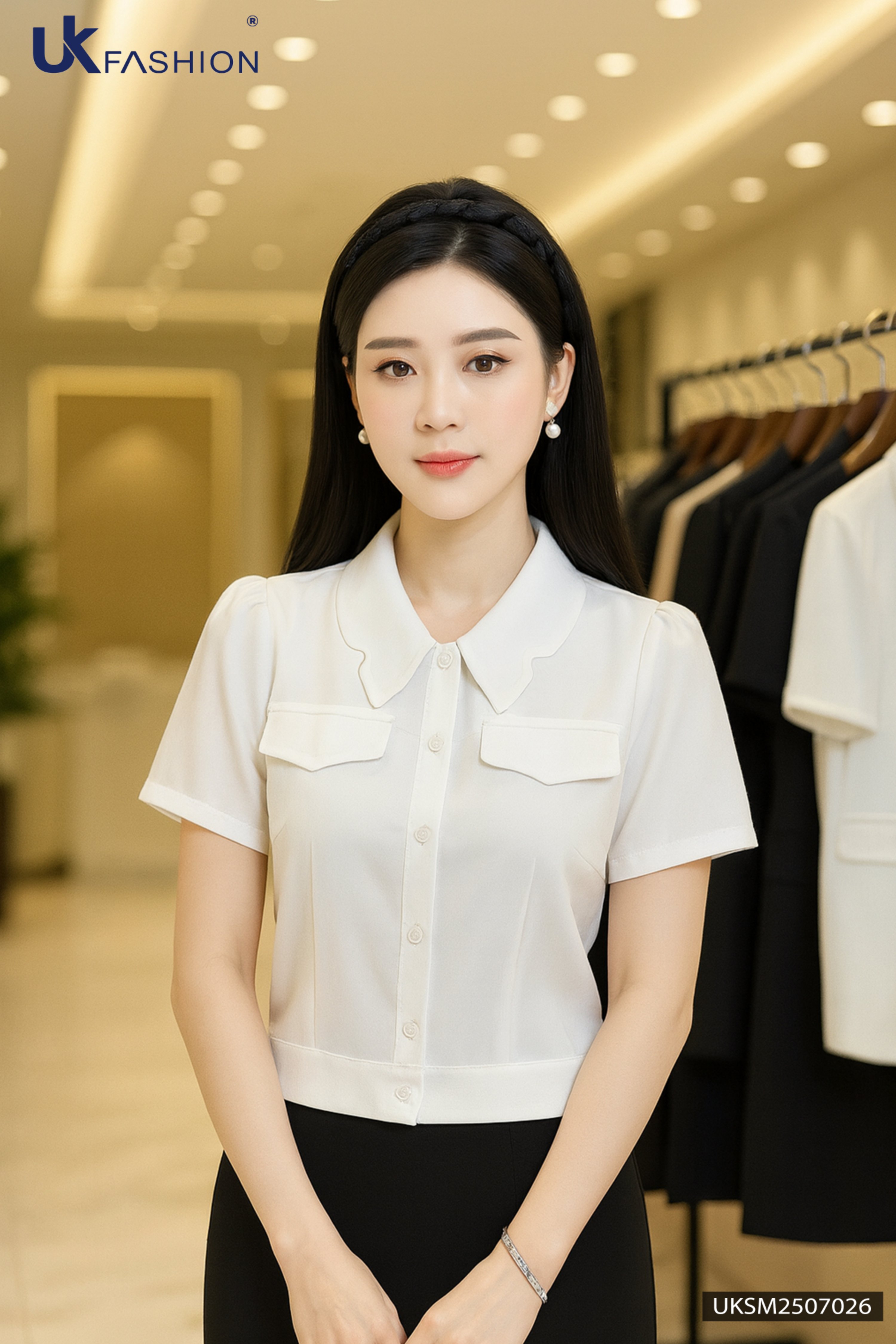Sơ mi cổ kiểu bo gấu nắp túi UKSM2507026