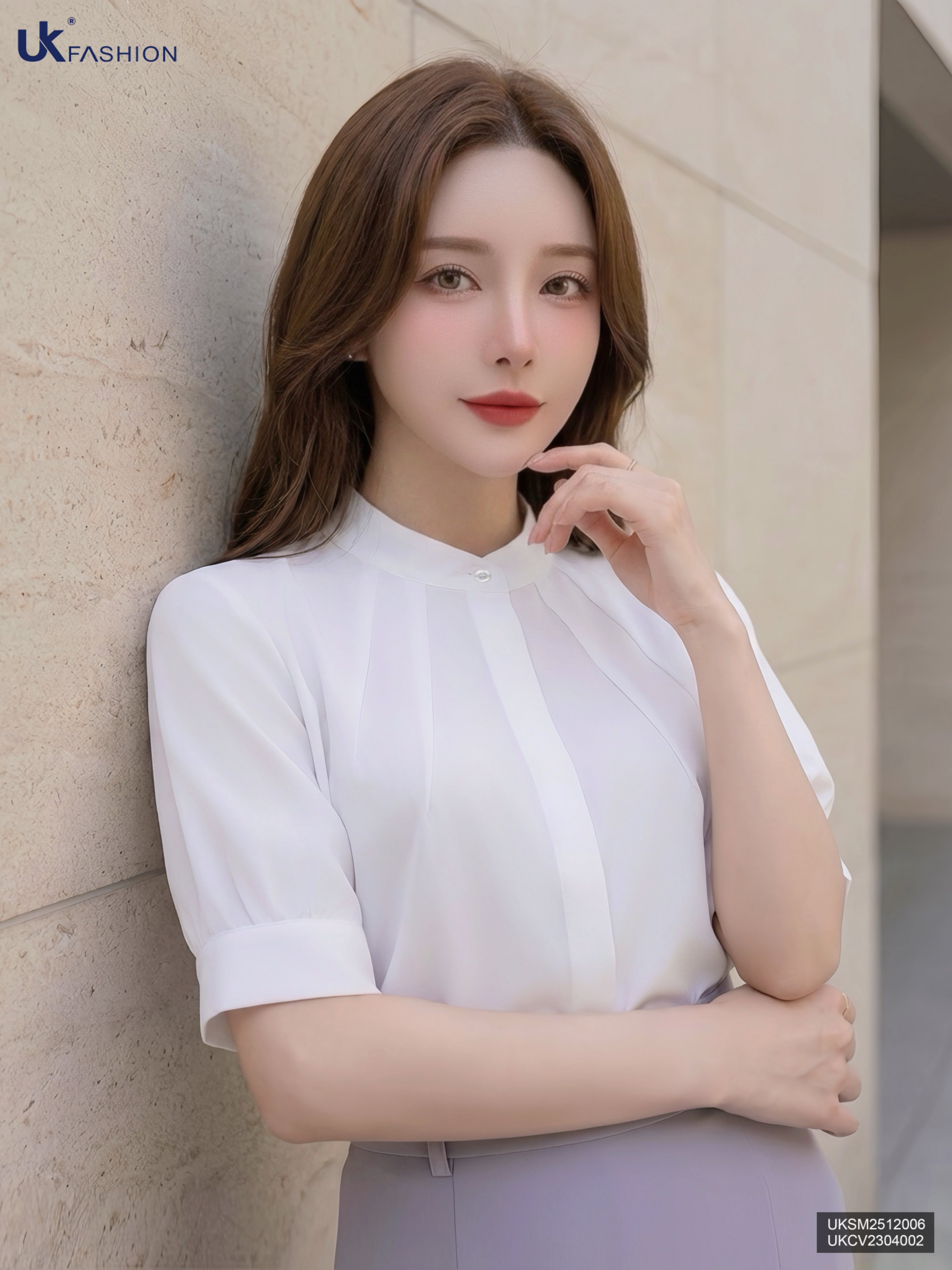 Sơ mi cổ tàu cộc tay mí cổ mềm mát siêu xinh UKSM2512006