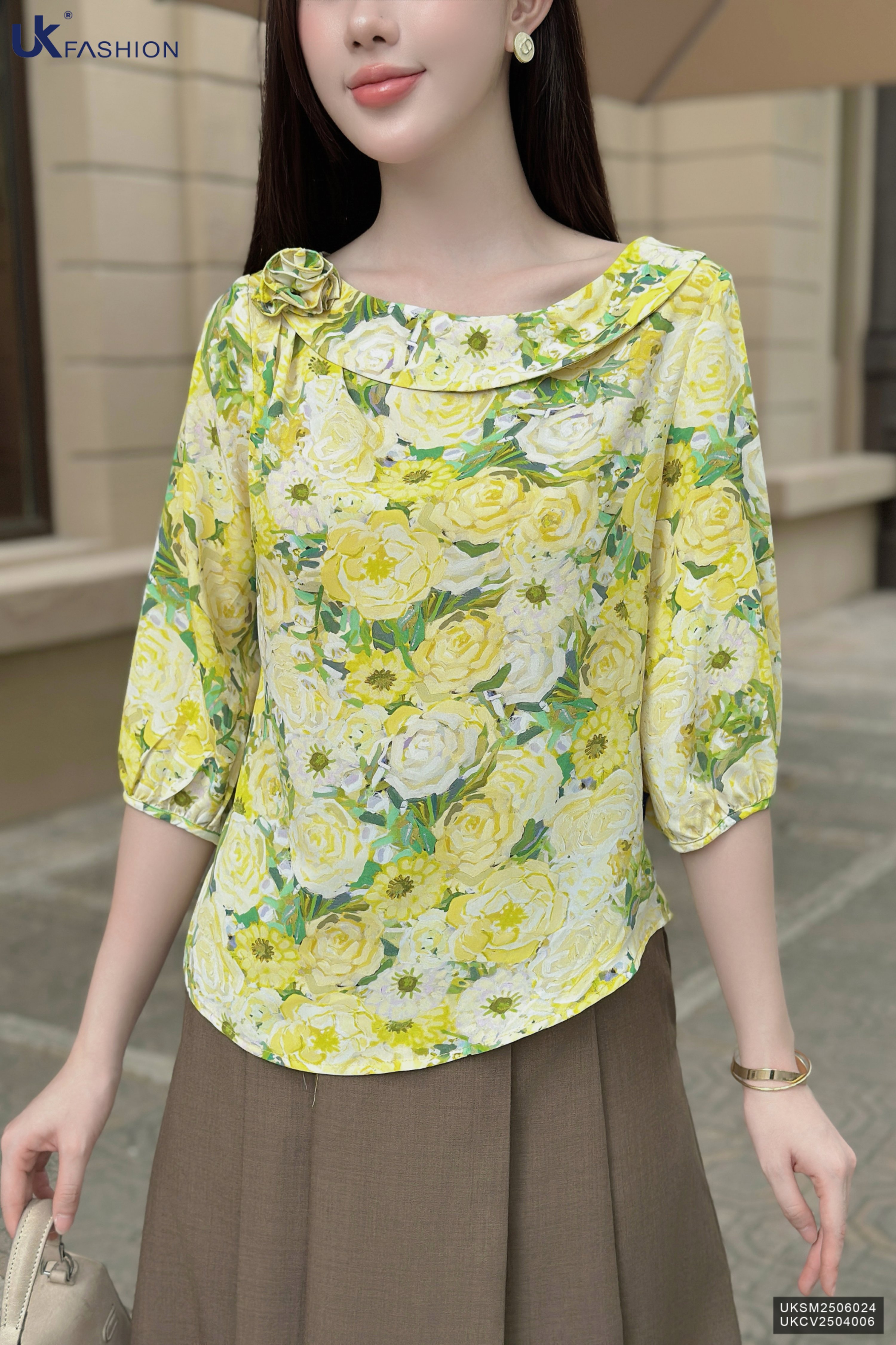 Sơ mi hoa lá cổ giếng - thay đổi phong cách của bạn UKSM2506024 KHUYẾN MÃI - NHẬN NGAY