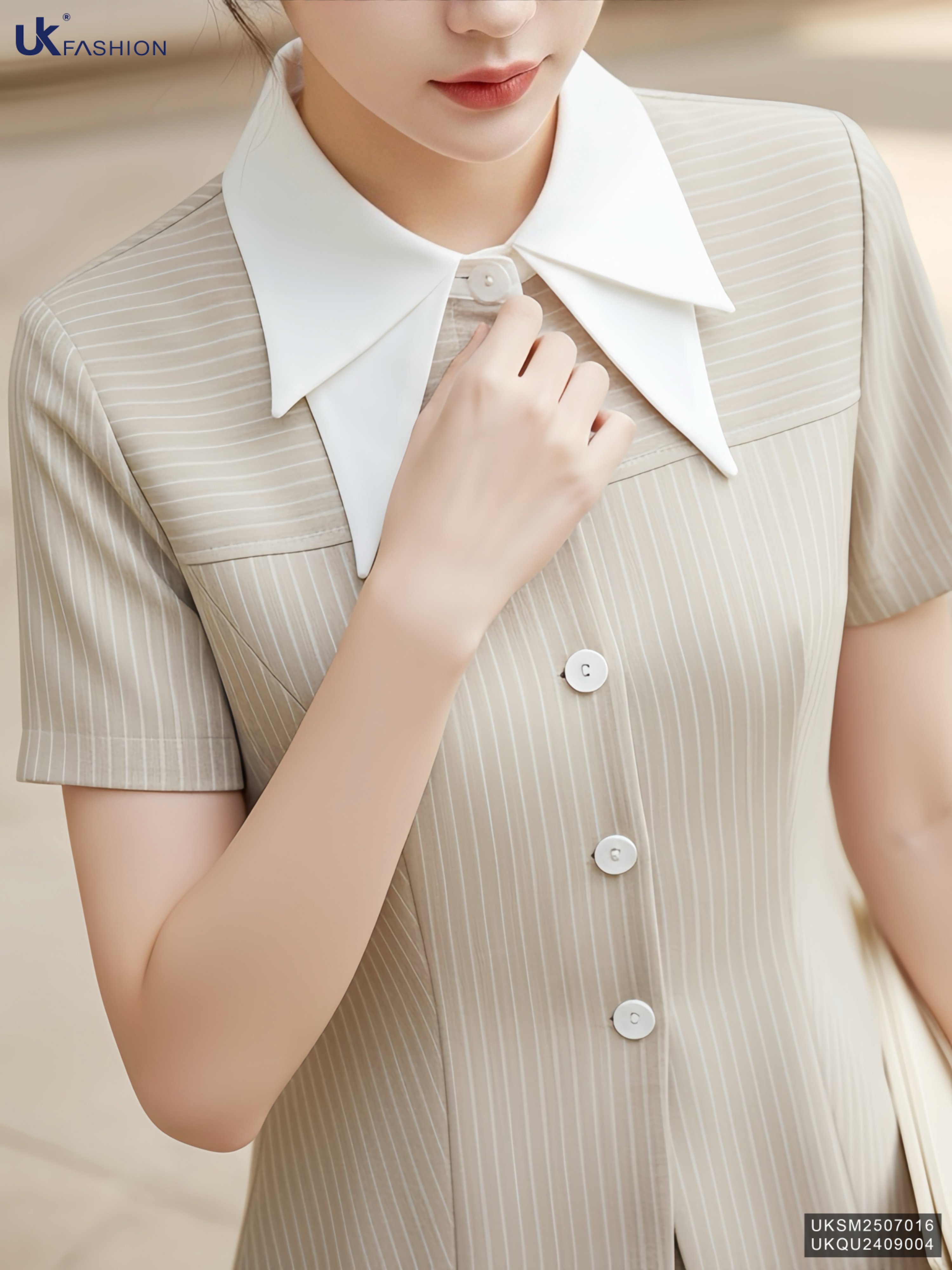 Sơ mi kẻ phối cổ kép kiểu cách mới cực trẻ UKSM2507016