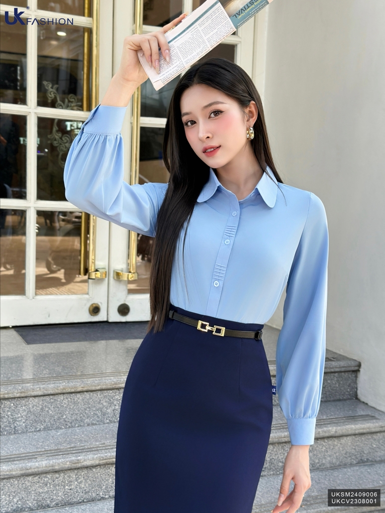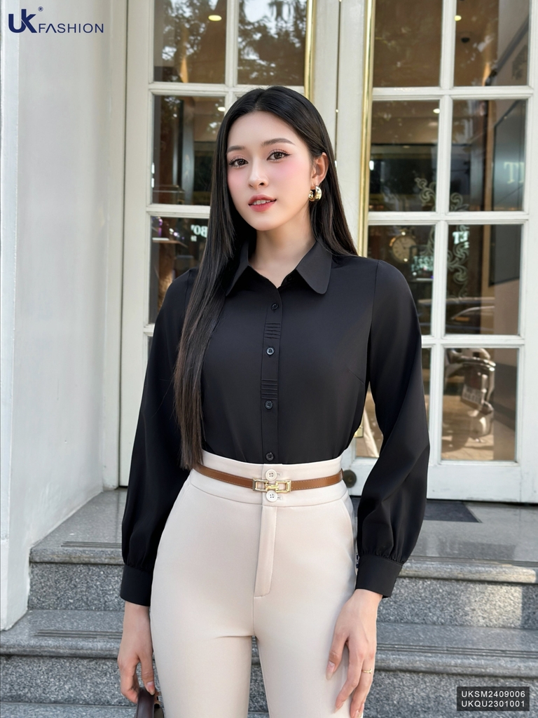 - Thiết kế tối giản trơn màu. Áo có thể mặc hằng ngày cùng quần âu, chân váy...