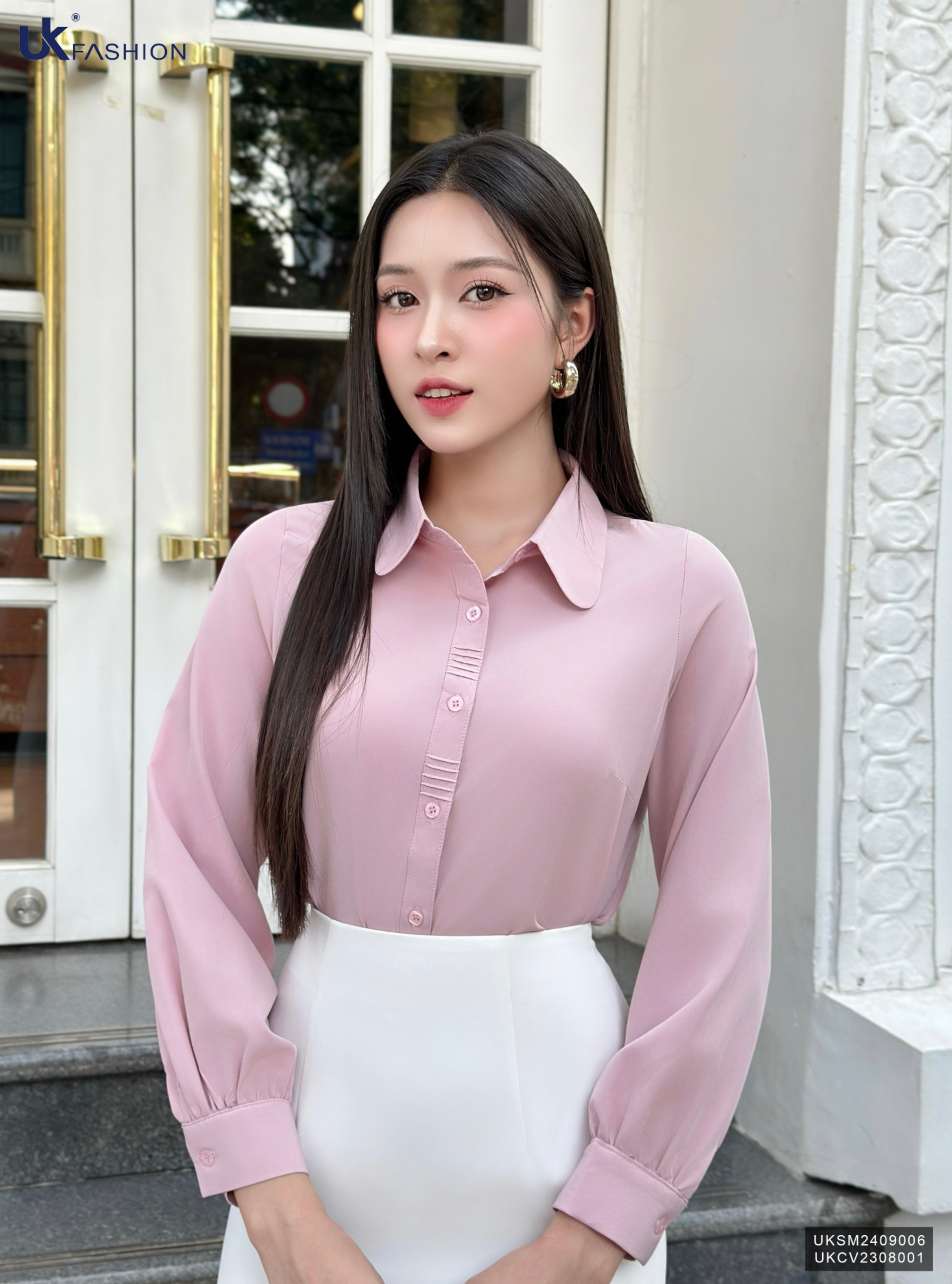 - Một trong những item mà bất cứ cô gái nào cũng không thể thiếu trong tủ đồ của mình. Thiết kế áo sơ mi trẻ trung, thanh lịch và nữ tính