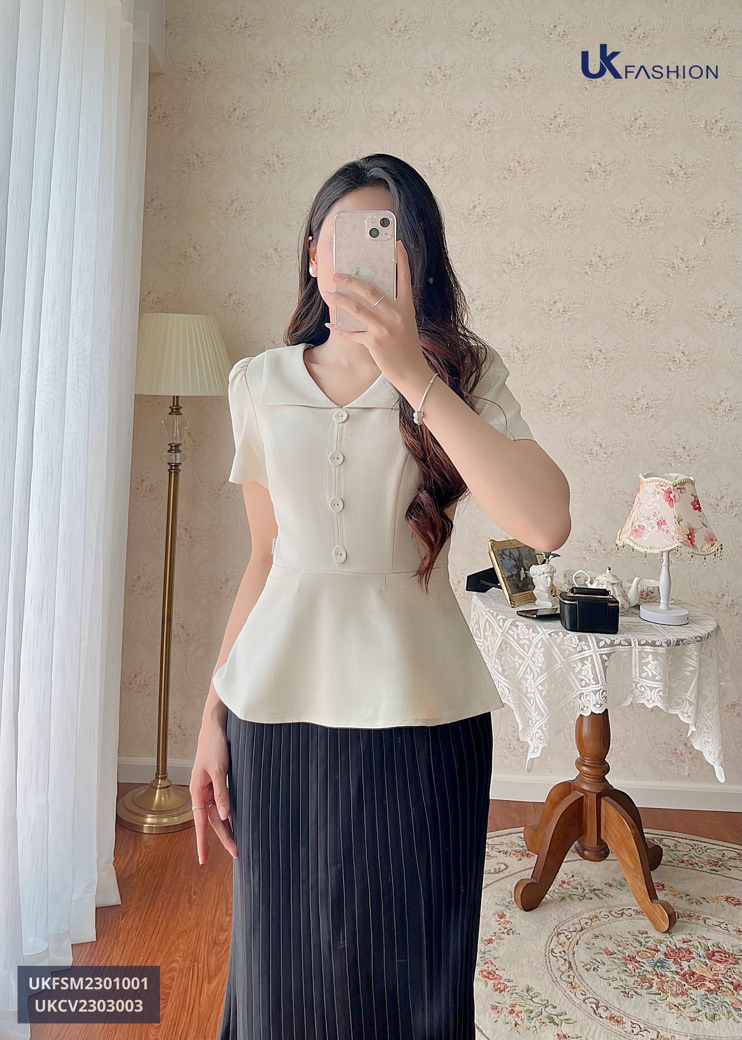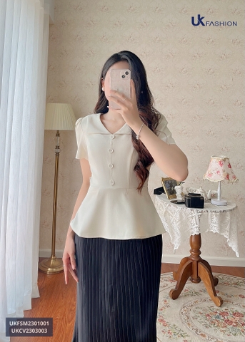 Thiết kế áo UKFSM2301001 sở hữu bảng màu ấn tượng và trendy: hồng, kem, nâu & xanh giúp nàng biến đổi phong cách mỗi ngày.