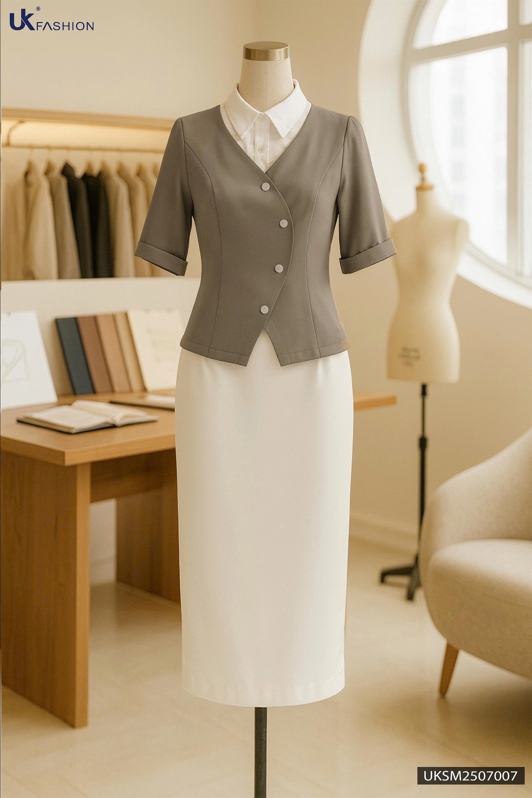 Sơ mi phối cổ sen vạt lượn kiểu cách mới UKSM2507007