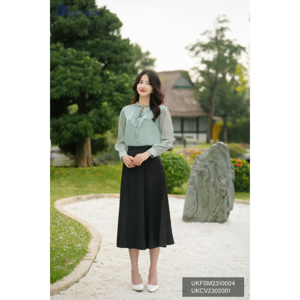 Áo Sơ Mi Tơ Cổ Bèo 2 Tầng UKFSM2310004 NK Fashion Thanh Lịch, Nữ Tính, Công Sở Nữ Style Hàn Quốc, Cao Cấp